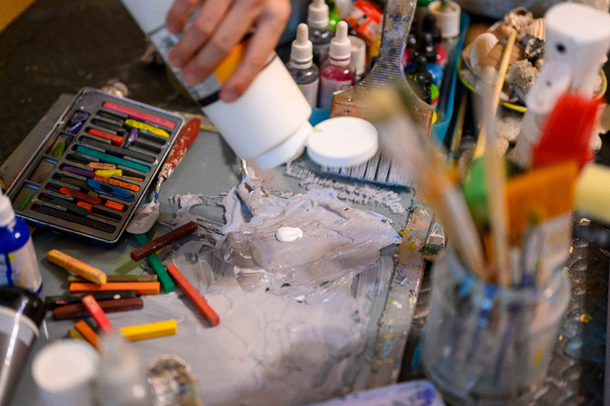 The process begins with intuitive mark-making and spontaneous play—layers of color, texture, and energy that unfold without a rigid plan. As distance and reflection enter the process, a story begins to take form. The surface is refined with intention, balancing detail and emotion until the painting feels complete.