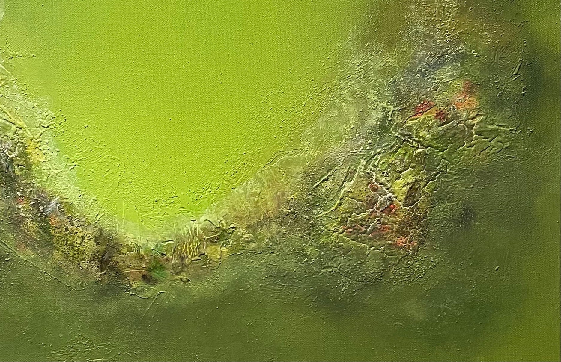 When I created this piece I wished it to be a personal exploration of textures and contrasts. I built up layers of washy inks over areas of modelling paste and manipulated them using various tools, such as brushes, sponges, and palette knives, to achieve the intricate details. The entire process was intuitive, driven by a sense of discovery and a deep connection I felt to the organic forms and colours of the natural world.